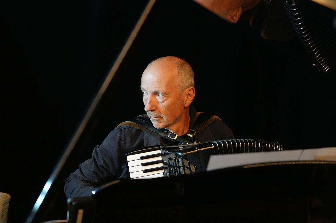 Depuis quelques années, les prestations en solo de Pirly Zurstrassen se suivent, mais ne se ressemblent pas. À l’accordéon, il nous propose un panaché de ses compositions pleines de poésie, de fantaisie ludique et de pépites sonores. Sans oublier les échappées dans le monde des musiques traditionnelles. Si vous vous sentez à l’étroit chez vous, allez donc prendre l’air pour l’écouter. Zurstrassen a trouvé une recette magique qui rend le pas léger et met les cœurs en fête.