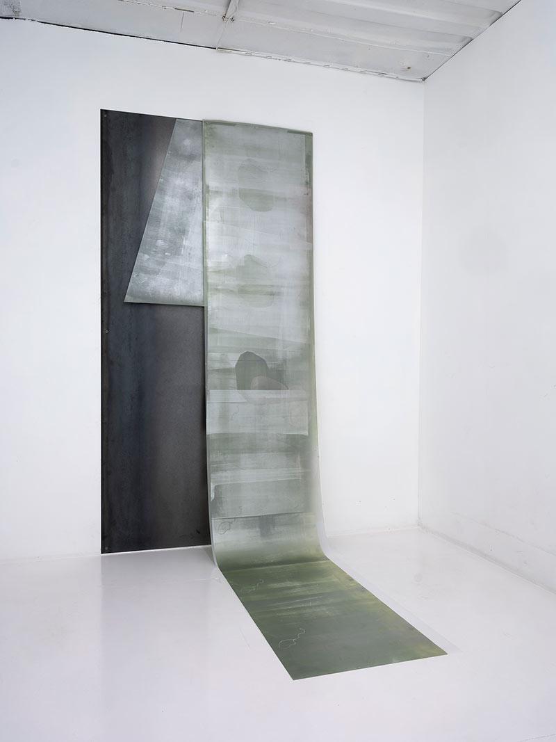 Sarah Behets, 'Pan', 2025. Tôle d’acier, polyester et encre, dimension variable © photo : Jean-Pierre Ruelle