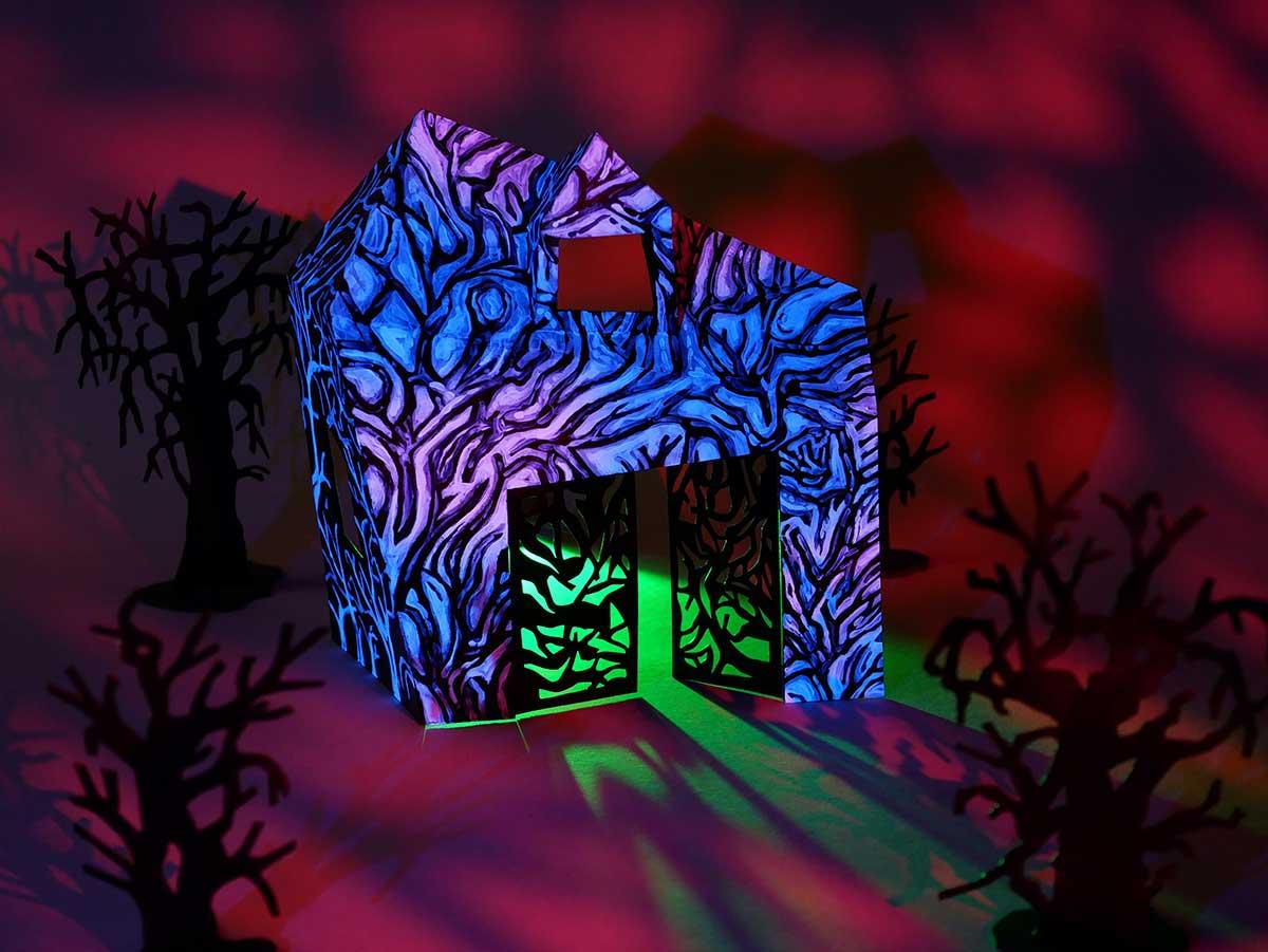 Cette exposition automnale sera, pour Daniel Daniel, un pas important, concret, vers la complétion d’une boucle tracée par un jeune vieux rêve, celui qui a infusé et l’a inspiré tout au long de son parcours créatif. Adolescent, il fabriquait déjà de ses mains un train fantôme, avec son frère, dans le jardin familial. Depuis, l’univers forain, en général, et surtout ce type de trains et les funhouses n’ont cessé de hanter son travail. Y entrent, y transitent et s’y découvrent, se tenant par la main tels des enfants effrayés ou fascinés, la peur et le (sou)rire, le saugrenu et le sérieux, le naïf et le recherché, le drôle et le cruel, l’usuel et le monstrueux, le sincère et le simulé, des lumières dans l’obscur, des couleurs sur fonds ténébreux, et un humour vital incorporant notre destin de macchabées. À la Maison de la Culture d’Arlon, la salle d’exposition deviendra un décor profondément sombre. Sculptures, peintures, objets étranges ou cinétiques, illuminés de lumière noire, surprendront les visiteurs par des bruits incongrus ou des tournures bizarres, au fur et à mesure de leur avancée dans un circuit labyrinthique. Depuis les parois ou le sol, en silhouettes ou en clarté, les œuvres les accueilleront, les scruteront, suscitant en eux les mêmes réactions et émotions que s’ils avaient été amenés à être les protagonistes d’un songe inquiétant, d’un cauchemar amusant, ou d’un jeune vieux rêve.